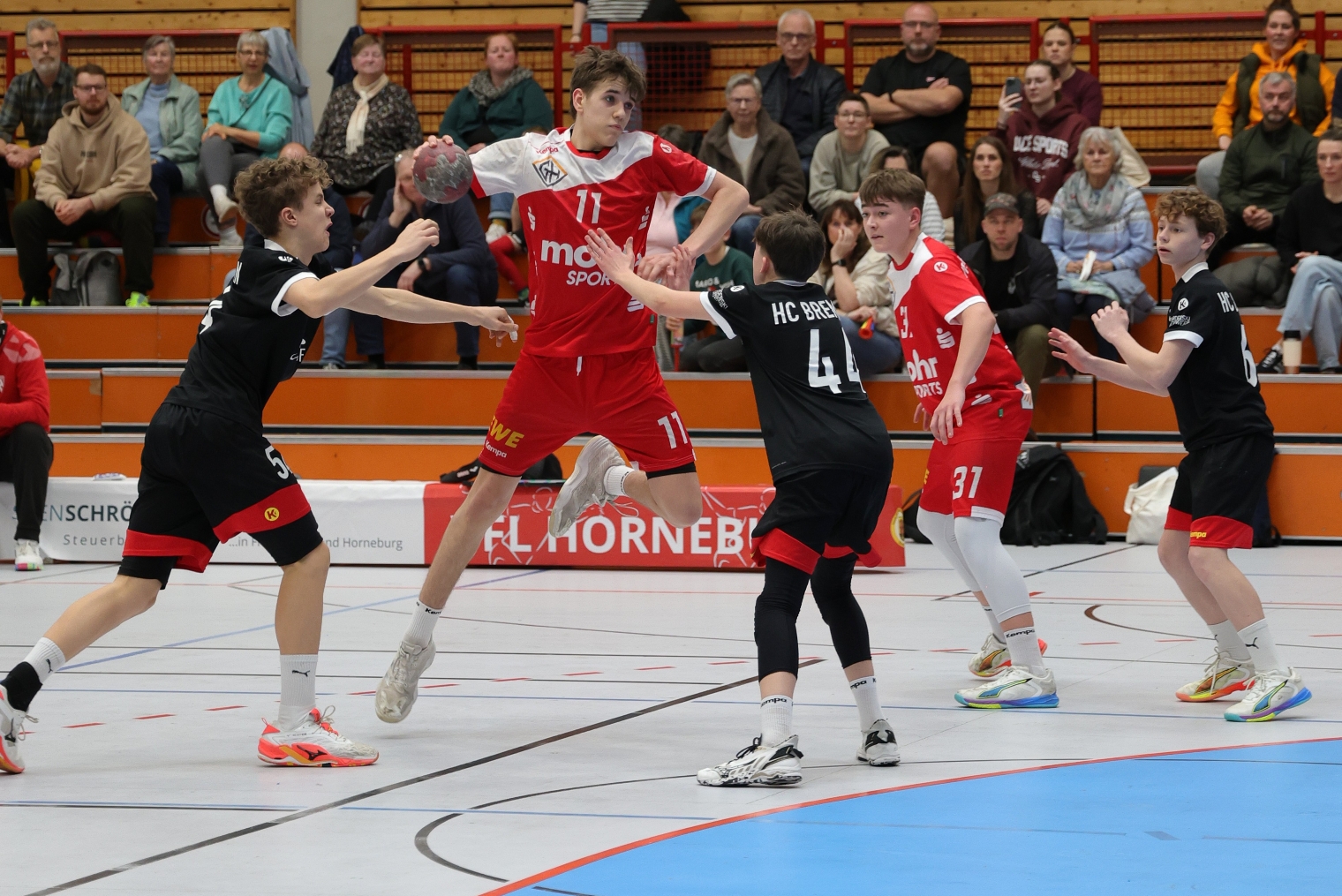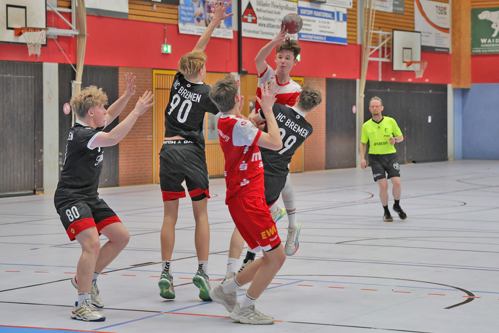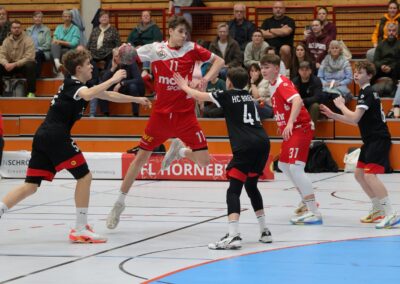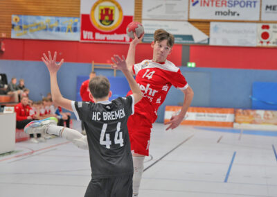 Bereits in der ersten Halbzeit hatten wir große Probleme im Abschluss. Ganze zwölf Angriffe konnten wir nicht erfolgreich verwerten. Trotz dieser Schwächephasen konnten wir uns auf eine überragende Torwartleistung verlassen. Mit 11 Paraden hielt uns unser Keeper im Spiel und sorgte dafür, dass wir zur Pause sogar mit 15:14 in Führung lagen. Defensiv standen wir ordentlich, kämpften um jeden Ball und hielten Bremen immer wieder vom einfachen Torerfolg ab.