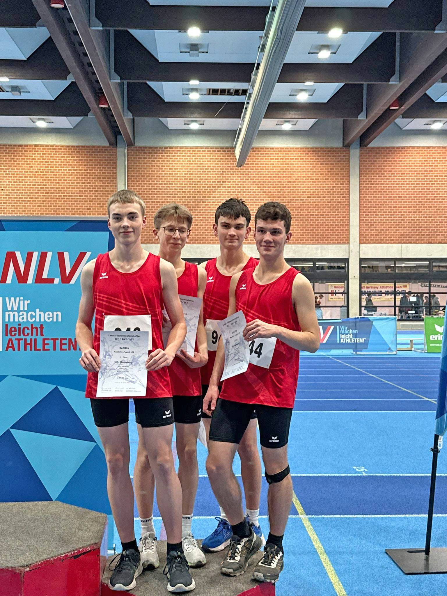Die männliche Jugend U18 des VfL Horneburg hat bei den Niedersächsischen Hallenmeisterschaften einen starken dritten Platz in der 4 x 200-Meter-Staffel erreicht.